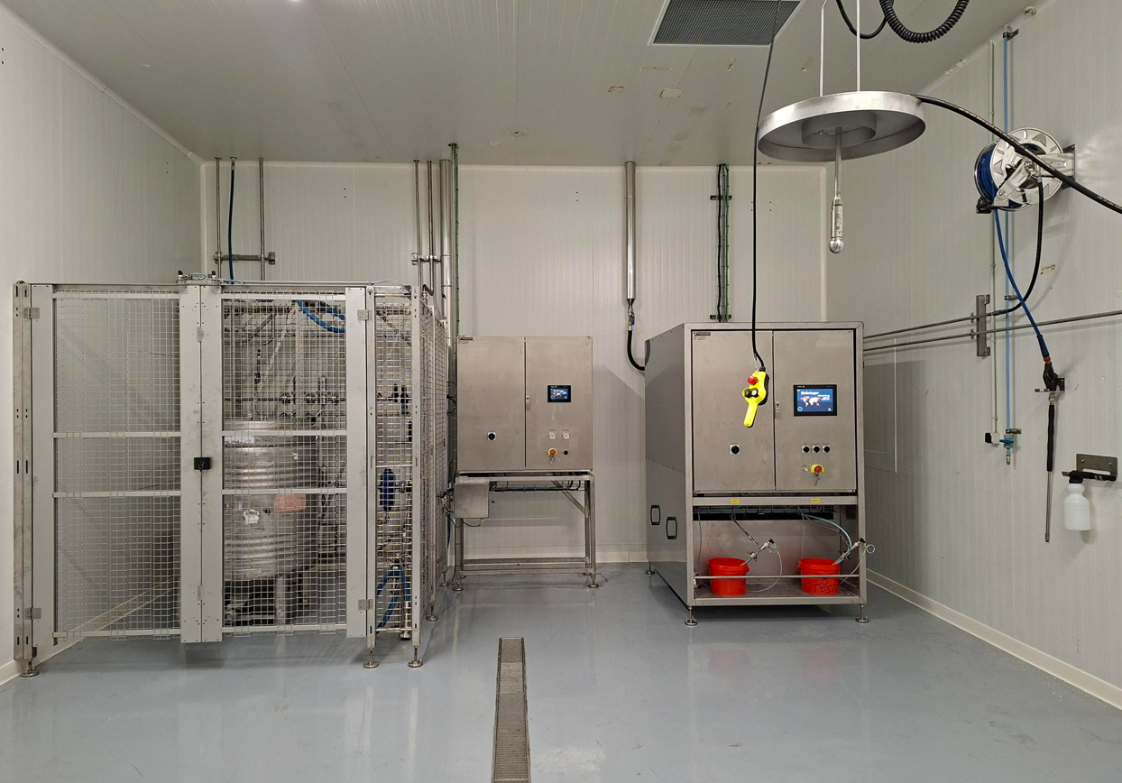 The internal cleaning of a container is done with a rotating washing head and can be carried out at different operating pressures. This is inserted manually or automatically into the IBC or stainless steel container. The external cleaning of IBCs or stainless steel containers can be carried out both manually and automatically.